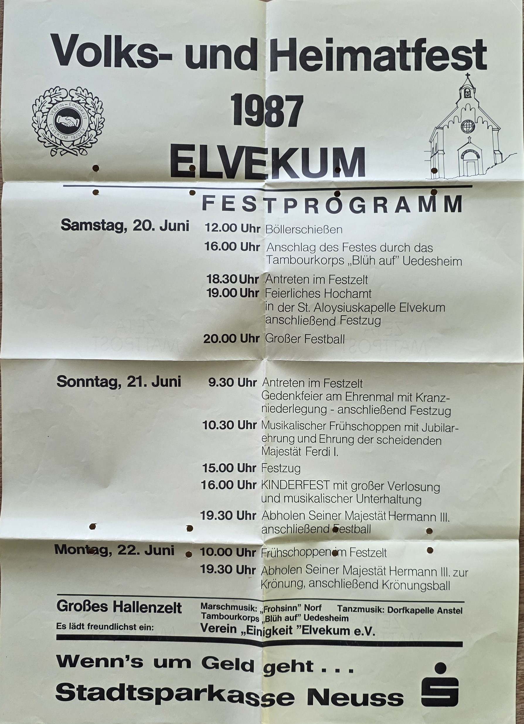 Bis zum Jahre 1956 wurde der Vereinskönig durch 'Hahneköppen', seit 1957 wird der Vereinskönig durch das Schießen auf einen Holzvogel ermittelt.